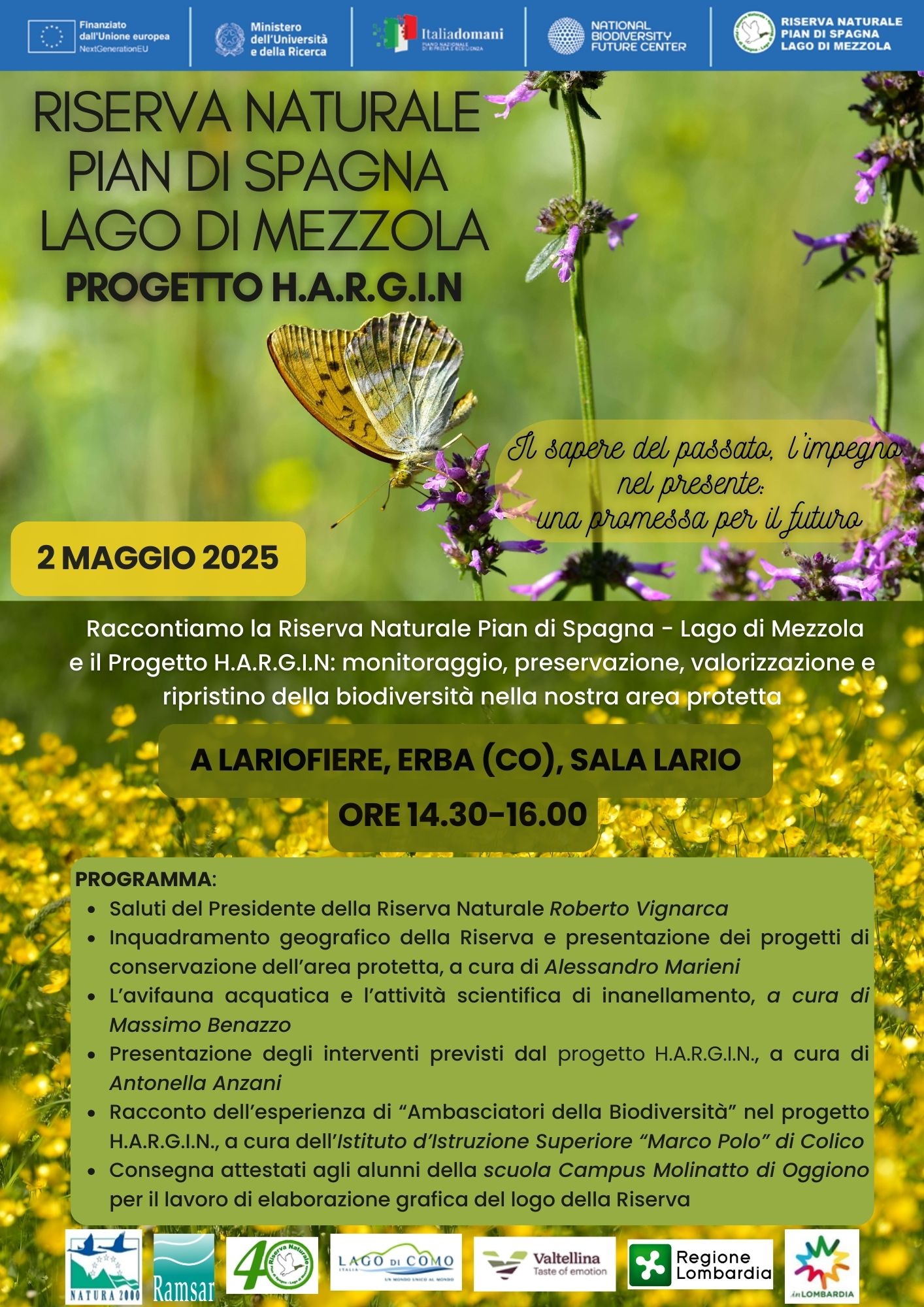 Il convegno sarà l’occasione per raccontare al pubblico cosa sia H.A.R.G.I.N, quale unicum di biodiversità sia rappresentato dalla Riserva Naturale Pian di Spagna-Lago di Mezzola e come anche le nuove generazioni abbiano dato un contributo importante, diventando “Ambasciatori di biodiversità” dell’area protetta. I ragazzi dell’Istituto di Istruzione Superiore Marco Polo di Colico, indirizzo agrario, sono stati infatti formati, nell’ambito degli interventi previsti dal progetto, per poter a loro volta diventare tutor e guide per le famiglie e i visitatori che arriveranno in Riserva durante gli eventi di Citizen Science in calendario.